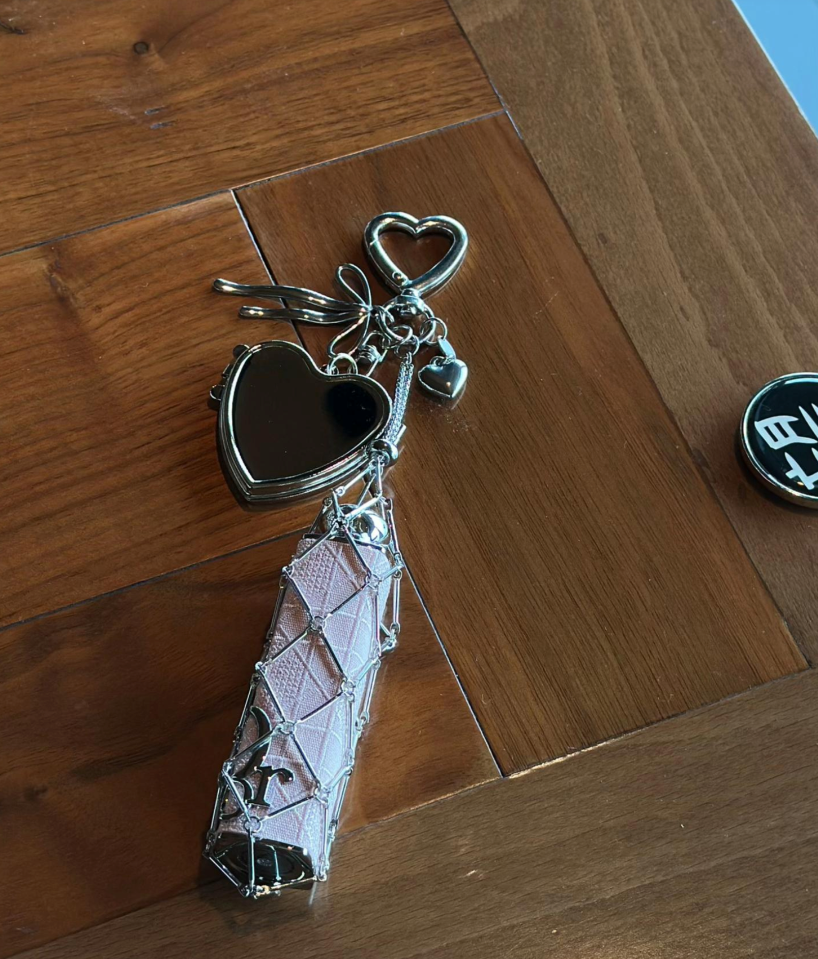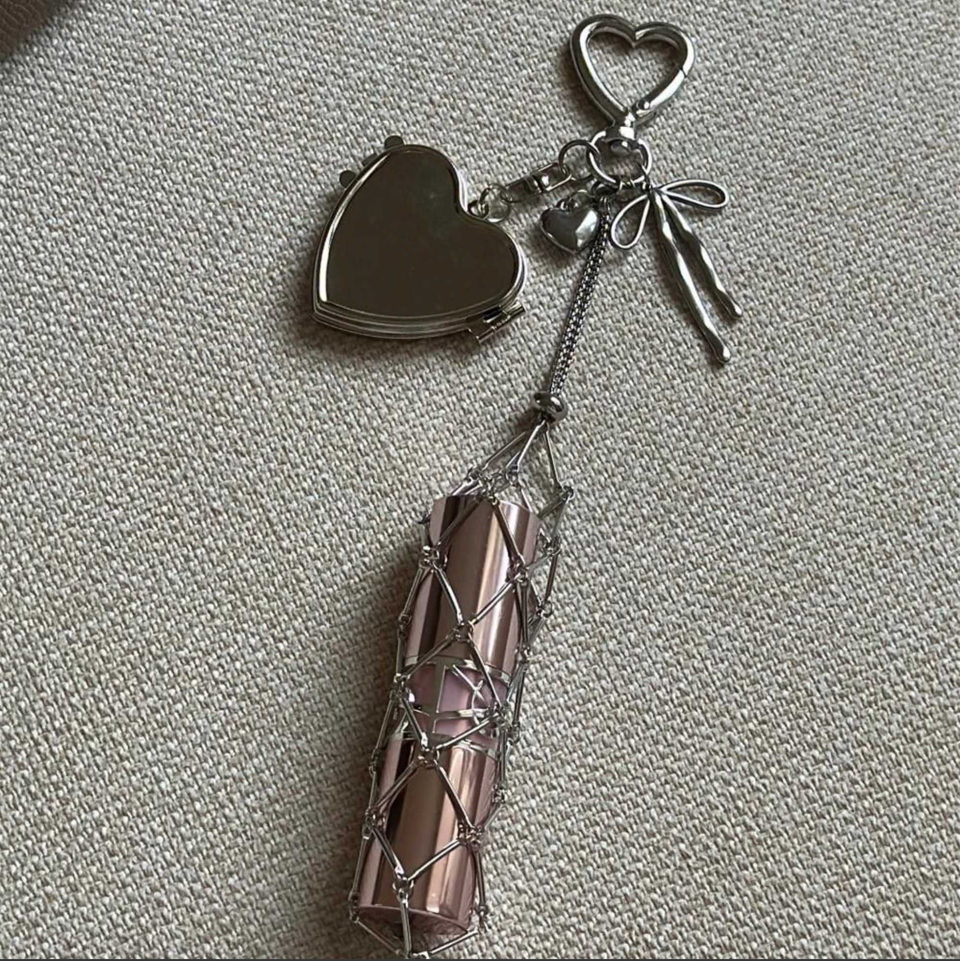 Chic keychain with a lipstick holder, mirror, and heart or star design (lipstick not included).